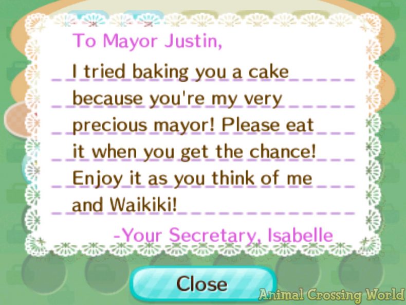 After logging in, you’ll find a variety of Valentine’s Day related letters sitting in your mailbox waiting for you. There are three different letters you can receive, including a letter from Isabelle containing a Chocolate Cake item that can be put on display in your house and a letter from your Mom with a Cacao Tree.