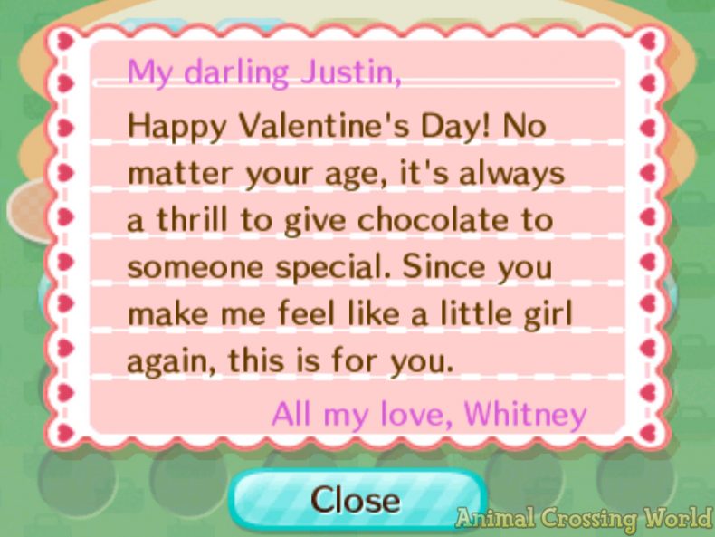 That’s just about all the content Valentine’s Day has to offer in Animal Crossing: New Leaf though! As you can see, this holiday hasn’t really been a full-fledged event in the past, but more of a small token occasion.