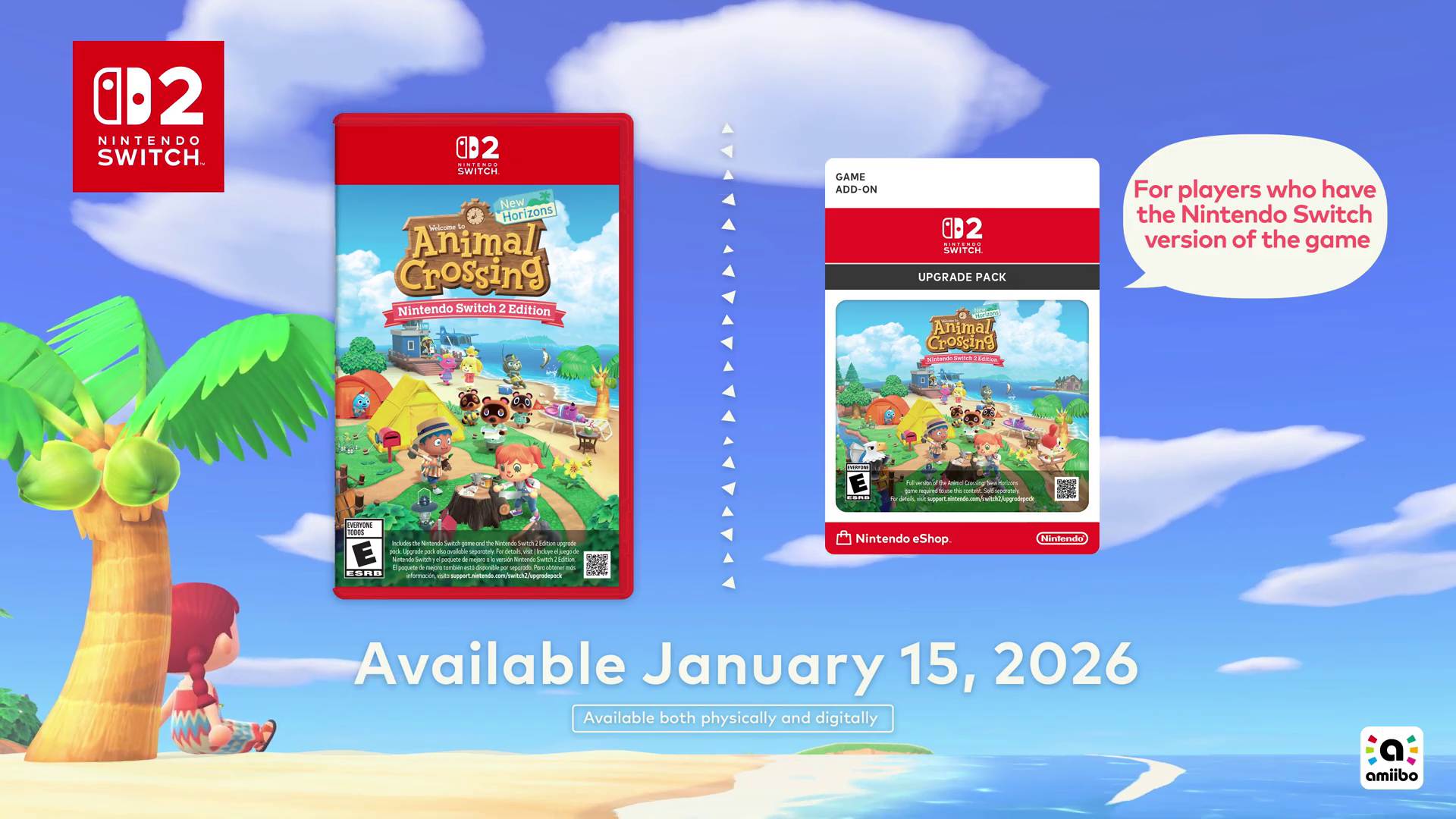 Existing digital and physical owners of Animal Crossing: New Horizons can buy a digital Upgrade Pack to Nintendo Switch 2 Edition for $4.99 USD / $6.99 CAD / £4.19 from the Nintendo eShop or a download code at retail stores.