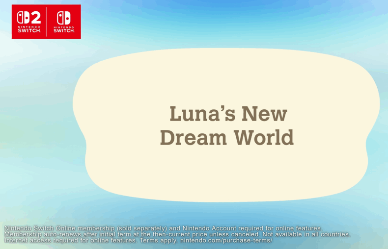 - The English trailer features a “Nintendo Switch Online membership (sold separately) and Nintendo Account required for online features.” disclaimer on screen when Slumber Island is first introduced, again prior to any discussion of the multiplayer aspect.