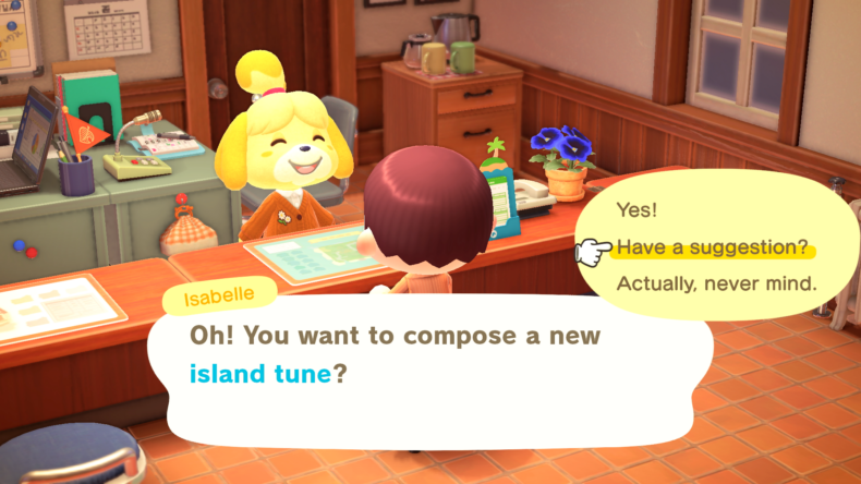 With the update, when discussing changing the Town Tune at Resident Services, Isabelle can offer a few different suggestions for changing the Town Tune if you don’t want to adjust it manually. These suggestions also include the original Town Tune in what is basically a reset option.