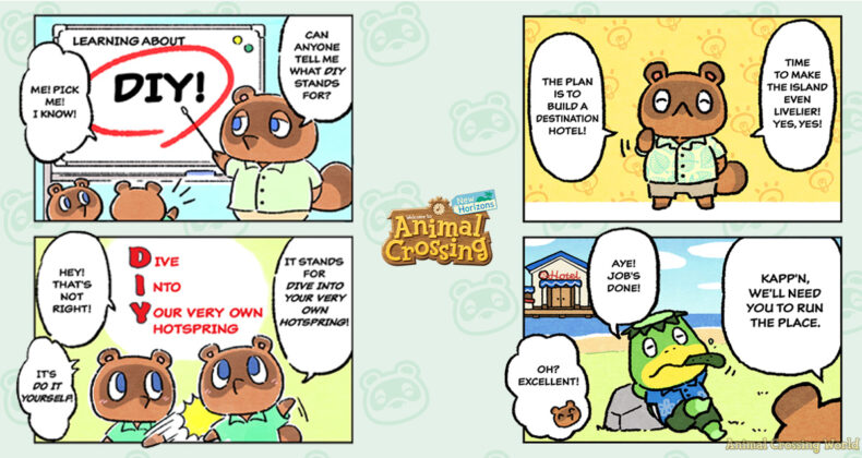 Originally released in the lead up to the game’s launch in early 2020, an eighth installment was last published on the first anniversary of Animal Crossing: New Horizons in 2021. Now, another 5 years later, a ninth edition has been released introducing the story of Kapp’n and Tom Nook working together to open the new Resort Hotel!
