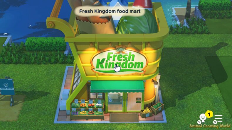 In terms of buildings, your island starts off with the Fresh Kingdom food mart to pick up food for your Miis. When you create all 3 Miis available in the demo, the Where & Wear clothing shop will open up too. A wishing fountain can also be built once your first Mii levels up.