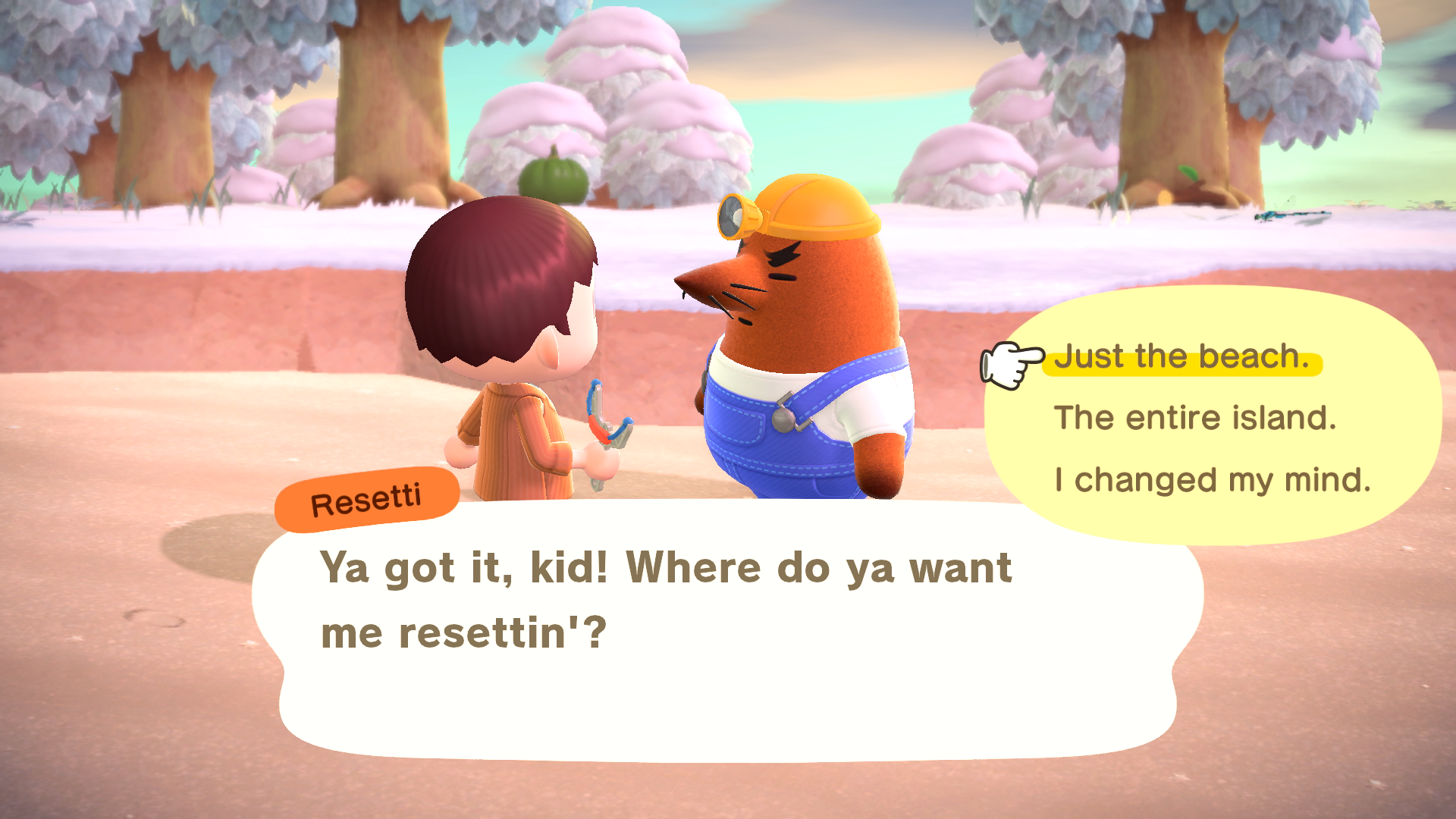 Aside from picking a specific plot of land, you can also select far more sweeping options of ‘Just the beach’ or ‘The entire island’ with Resetti.