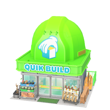 At Quik Build, you can begin purchasing outdoor decorations to place around your island’s land including benches, streetlights, vending machines, flowers, hedges, and more!